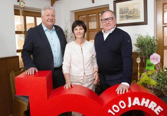 Zum 100-jährigen Firmenjubiläum von „Spreewald Müller“ überbrachten Bürgermeister Helmut Wenzel sowie Hartmut Klauschk von der Wirtschaftsförderung der Stadt Lübbenau/Spreewald ihre herzlichen Glückwünsche an Geschäftsführerin Cornelia Rosner und das gesamte Team von Spreewald Müller.