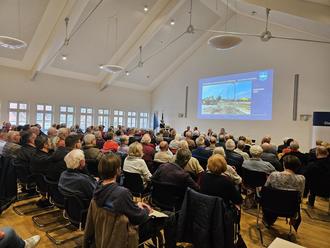Am 1. April 2025lud die Bürgerinitiative „Drüber oder Drunter“ zur Informationsveranstaltung im Rahmen der Baumaßnahmen des „Niveaufreien Verkehrskonzeptes“ in das Rathaus. Moderiert von Uwe Pielenz, Vorstandsvorsitzender der Bürgerinitiative, hatten rund 120 interessierte Bürgerinnen und Bürger die Gelegenheit sich über den aktuellen Stand und die nächsten Schritte der Baumaßnahmen am Bahnübergang zu informieren. Bernd Krüger, Projektleitung der DB InfraGO AG, Vertreter der Landesstraßenbauverwaltung sowie Fachbereichsleiter Sven Blümel von der Stadt Lübbenau/Spreewald erläuterten den Fortschritt der einzelnen Bauabschnitte – Nordkopf, Südkopf und Güterbahnhofstraße, als jeweilige Baudurchführende.