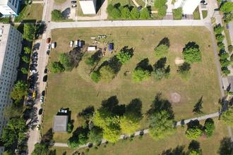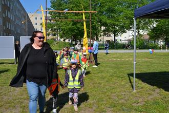 Der Neubau soll an der Richard-Wagner-Straße entstehen. Zum Tag der Städtebauförderung wurde der Grundriss anschaulich in Originalgröße auf dem Erdboden dargestellt. So konnten die Kleinsten schon einmal in Gruppenräumen spielen, das Bad erkunden oder die Größe des Bewegungsraumes austesten – natürlich alles noch ohne echte Mauern. Dennoch ließ sich die Dimension des Gebäudes bei dem Aktionstag gut erahnen.