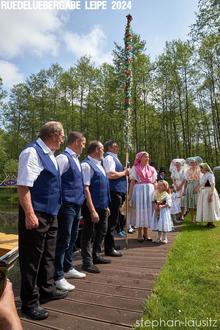 Da staunten die zahlreichen Gäste am Leiper Naturhafen und würdigten den Trachtenkahn mit viel Beifall. Die Blasmusik unterstrich die "Einfahrt" mit Musik, wie zu Großmutters Zeiten. Zum 25. Mal eröffnete der Fährmannsverein die Saison und bekam von Christina Greiner und Annelie Buchan die festlich geschmückte Rudel überreicht. "Ketten los und Rudel klar!“ - hieß es, um dann zu Schnupperfahrten einzuladen. Einer der Höhepunkte war dann die Vorstellung des "Trachtenreigens", der seit vielen Jahren durch die Vielzahl der verschiedenen wendisch/niedersorbischen Trachten bei den Gästen mit großer Begeisterung aufgenommen wurde. Moderatorin Marlene Jedro wies bei der Begrüßung auf Wendisch/Neders darauf hin, dass die Trachten nicht nur als Spreewaldtrachten zu bezeichnen sind.