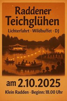 Wir laden ein zum Tanz am Klein Raddener Teich am Donnerstag, 2. Oktober 2025, in besonderer Atmosphäre unter dem Motto der Teich glüht. Mit einer wundervoll beleuchteten Kulisse, romantischer Lichterfahrt auf dem Teich und mit einer feurigen Überraschung gegen 22:30 Uh gibt es eine Veranstaltung der besonderen Art – untermalt wird der Abend mit toller Musik und kulinarischen Highlights aus dem Spreewälder Wald.