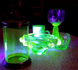Ein besonderes Highlight der Ausstellung ist das Uranglas. Die mit Uranoxidverbindungen grünlich eingefärbten Gläser fangen unter Schwarzlicht zu leuchten an - ein unbedingt sehenswerter Effekt.