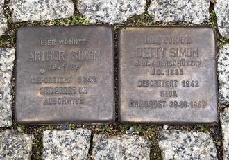 In der Gartenstraße 4 wohnte der Bauarbeiter David Tasselkraut mit seiner Frau Helene. Er wurde 1942 aus seiner Wohnung geholt und nach Auschwitz deportiert. An der Langen Straße 52, heute noch im Volksmund „Simons Eck“ genannt, betrieb die Familie von Betty und Arthur Simon eine Manufakturwarenhandlung. In der Pogromnacht 1938 wurde das Geschäft zerstört. Ihre Hoffnung, nach Peru auszuwandern, erfüllte sich nicht. Betty Simon wurde im Oktober 1942 deportiert, Arthur Simon im Februar 1943.