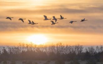 Wer gemeinsam mit den Schwänen wach werden möchte, beobachtet mit der Naturführerin der Heinz Sielmann Stiftung den morgendlichen Ausflug der Schwäne aus ihren Schlafplätzen am Schlabendorfer See. Von der Beobachtungsplattform auf dem Gelände des Heinz Sielmann Natur-Erlebniszentrums in Wanninchen können Gäste mit Spektiv und Fernglas Schwänen, Gänsen und weiteren Wintergästen näher kommen, ohne sie zu stören.