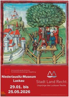 Seit dem 12. Jahrhundert entwickelte sich das Magdeburger Recht zum bedeutendsten europäischen Stadtrecht und fand seinen Weg in über 1.000 kommunale Gemeinwesen – so auch nach Luckau. Die Tafelausstellung „Stadt.Land.Recht“ möchte an die Anfänge dieser Entwicklung zurückführen, die im heutigen Sachsen-Anhalt liegen. Die Ausstellung zeigt die besondere Relevanz des Magdeburger Rechts und dessen Einflüsse auf die Ausformung städtischer Gemeinwesen bis hin zur Prägung kommunaler Siedlungsstrukturen. Auch das innerstädtische Leben, die Beziehungen zwischen den Städten sowie die Aushandlung von Konflikten und Rechtsstreitigkeiten im Sinne des Magdeburger Rechts werden hier exemplarisch beleuchtet. Darüber hinaus verdeutlichen allgemeine Thementafeln bedeutsame Einzelaspekte zur Geschichte des Magdeburger Rechts und der städtischen Geschichte in einer überregionalen Perspektive.