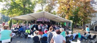 Der Biergarten des Luckauer Schlossberges war bis auf den letzten Platz gefüllt und die Seniorinnen und Senioren sowie zwei Gäste aus dem Hospiz genossen die Musik der 6 Musiker des Landespolizeiorchesters.