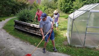 Zwei Bewohner, augenscheinlich die Gärtner, saßen gerade auf der Bank und legten wohl ein Päuschen nach getaner Arbeit ein. Als sie die Besucher sahen, freuten sie sich und erzählten über ihr Hobby. In den oberen Geschossen des Hauses sind u. a. die Küche, eine Holzwerkstatt und ein Veranstaltungsraum untergebracht. Die Leiterin machte darauf aufmerksam, dass zwei Köche für die Mittagsverpflegung in Luckau sowie für die Einrichtung in „Kapernaum“ Waltersdorf sorgen. Für das Frühstück und das Abendessen seien die Bewohner mit ihren Betreuern selbst verantwortlich. Jeden Tag werden die Bewohner mit einem kleinen „Einkaufszettel“ ausgestattet, um für diese Mahlzeiten die passenden Zutaten aus der Küche zu holen. Wer handwerklich geschickt ist, dem steht die Holzwerkstatt offen. Einige handgefertigte Objekte konnten hier in Augenschein genommen werden. Nach dem Rundgang versammelten wir uns in dem Veranstaltungsraum. Dieser werde u. a. für Feiern, Andachten und Sitzungen genutzt. Frau Guckel weist an dieser Stelle drauf hin, dass die besondere Wohnform 1996 für Erwachsene mit geistiger Behinderung errichtet wurde. Das Objekt bietet 32 Plätze für mittelgradig- bis schwerst- und schwerstmehrfach behinderte Menschen. Nach dem Rundgang verabschiedete sich der Behindertenbeirat und bedankte sich für die umfänglichen Informationen rund um das Haus und die Arbeit.