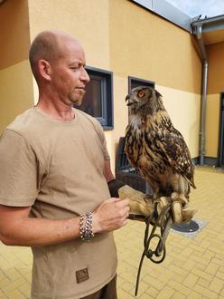 Bis dahin gab es noch viele tolle Ferienangebote, wie z.B. Kinderyoga, eine Bewegungsbaustelle, einen Wassertag und wir hatten sogar tierischen Besuch von „Bea“. „Bea“ gehört zu der größten Eulenart und ist ein Uhu. Sie war handzahm und ließ sich von den Kindern streicheln und genau betrachten. Der Besitzer, Ronny Naumann aus Heinzdorf, beantwortete uns geduldig alle Fragen und erklärte uns die Besonderheiten der Haltung und Pflege.