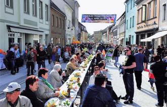 Glanzpunkt ist die lange Kaffeetafel von der Pizza Sonne (Goldener Ring) bis zur Bücherecke am Töpfermarkt.