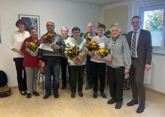 v.l.n.r.: Monika Drillisch, Helga Wieck, Reinhard Leschke, Marlies Jäckel, Margit Müller, Rolf Albrecht, Helga Schulze, Fritz Schäfer, Bürgermeister Gerald Lehmann