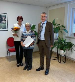 Herr Uwe Kläge konnte leider nicht an der Ehrung teilnehmen. Frau Doris Budemann nahm stellvertretend die Auszeichnung entgegen. Fotos: Stadt Luckau