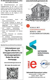 "Tag der offenen Tür" am Bohnstedt-Gymnasium Luckau