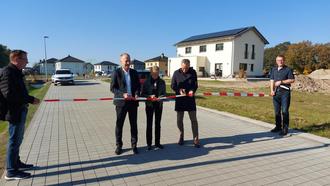 Mitte dieses Jahres begann nun auch der finale Ausbau der Straße. Nachdem bereits alle notwendigen Medien für Schmutz- und Trinkwasser, Regenentwässerung, Strom und Telekommunikation etc. verlegt wurden, konnte nun am Freitag, den 25.10.2024 der Banddurchschnitt und somit die Freigabe der Verkehrsanlage der neuen Straße „An der Luckauer Schweiz“ erfolgen.
