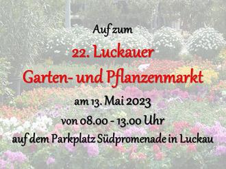 Bereits zum 22. Mal öffnet der Garten- und Pflanzenmarkt auf dem Laga-Parkplatz an der Südpromenade am Samstag, den 13.05.2023 von 8 bis 13 Uhr seine Pforten. Wie in den Vorjahren werden sich zahlreiche Betriebe mit einem vielfältigen Pflanzen- und Staudensortiment präsentieren. Sie bieten von Beet- und Balkonpflanzen bis hin zu Tomatenpflanzen, Gurken oder Paprika aber auch Kräutern alles an.