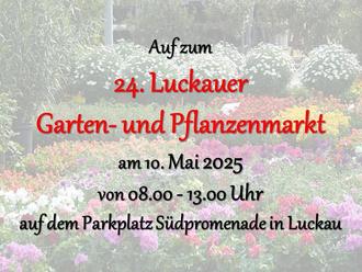 Bereits zum 24. Mal öffnet der Garten- und Pflanzenmarkt auf dem Laga-Parkplatz an der Südpromenade am Samstag, den 10.05.2025 von 08:00 bis 13:00 Uhr seine Pforten. Wie in Vorjahren werden sich zahlreiche Betriebe mit einem vielfältigen Pflanzen- und Staudensortiment präsentieren. Sie bieten von Beet- und Balkonpflanzen bis hin zu Tomantenpflanzen, Gurken oder Paprika aber auch Kräutern alles an.