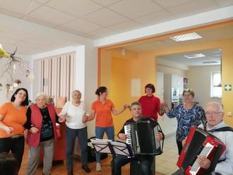 Die Musikanten Herr Werner Hennig und Herr „Ecki“ Kochte haben mit ihren Akkordions für eine tolle Stimmung im Saal gesorgt. Viele Lieder wurden von den Gästen der Tagespflege mitgesungen. Es wurde auch geschunkelt und getanzt. Insgesamt war es ein wunderschöner und erlebnisreicher Vormittag für die 15 Gäste der Einrichtung. Zwei Mitglieder des Seniorenbeirates der Stadt Luckau waren ebenfalls dazu eingeladen. Nach einer herzlichen Begrüßung und der Überreichung von einem kleinen Präsent für die Gäste, haben wir dann ebenfalls mitgefeiert.