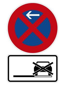 Zeichen 283-10 (Absolutes Haltverbot Anfang) mit Zusatzzeichen 1060-31 (Haltverbot auch auf Seitenstreifen)