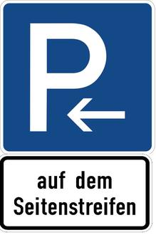 Zeichen 314-10 (Parken Anfang) mit Zusatzzeichen 1053-34 (auf dem Seitenstreifen)
