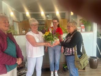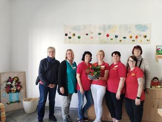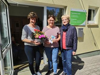 Es wurde jeweils ein Blumenpräsent mit einem Kartengruß an das Pflegeteam überreicht. Von dieser Überraschung waren die Pflegeteams sichtlich sehr erfreut.