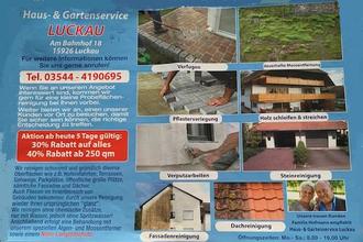 Durch die Lausitzer Rundschau und die Stadt Cottbus wurde die Stadt Luckau auf den beigefügten Werbeflyer aufmerksam gemacht. Einen angemeldeten Betrieb, welcher Haus- und Gartenservice Leistungen unter der im Flyer angegebenen Firmenadresse anbietet, ist der Stadt Luckau nicht bekannt, auch liegt kein angemeldetes Reisegewerbe (z.B. für Haustürgeschäfte) vor.