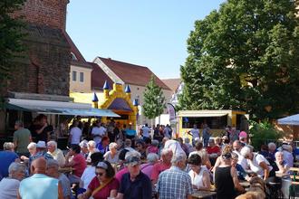 Nach einer kurzen Nacht kamen dann alle Kartoffelliebhaber auf ihre Kosten. Vereine der Region boten den Besuchern eine Vielzahl an unterschiedlichen Kartoffelspezialitäten an. Das Ehrenamtsfrühschoppen mit Bürgermeister Gerald Lehmann wurde erstmals durch ein Salonkonzert mit Swing und Tango des Ensembles "KulturSchlagLicht" begleitet. Die kleinen Gäste konnten sich auf der Hüpfburg und beim Kinderbasteln vergnügen und für alle Liebhaber historischer Bauwerke öffneten zahlreiche Denkmäler der Region ihre Türen.