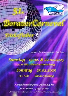 Mit dem Motto „Diskofieber“ erinnert der Borauer Carnevalsclub zum 51. Karneval an die legendäre Diskozeit in Borau.