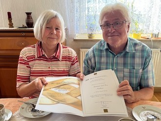 Die Stadt Lützen und Bürgermeister Mirko Kother gratulieren Eva und Dietmar Neuhaus zur Goldenen Hochzeit und danken für das große Engagement für die Gemeinde.