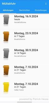 | • | Filtern Sie sich die gewünschten Tonnen. Lassen Sie sich z. B. nur die Blaue und die Biotonne anzeigen. |