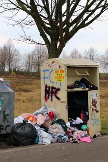 Sollten die Altkleidercontainer voll sein, dann nutzen sie bitte den nächsten Container oder bringen die Kleidung auf die Wertstoffhöfe.