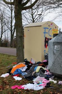 Es ist ein Bild, welches am Ortseingang von Gerstewitz unschön die Gäste und Einwohner empfängt: Ein Altkleidercontainer ist aufgebrochen und der Inhalt um den Metallkasten vertreut.