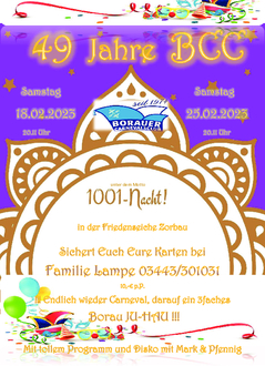 Der Borauer Carnevalsclub (BCC) hat seine 49. Session unter das Motto „1001 Nacht“ gestellt.