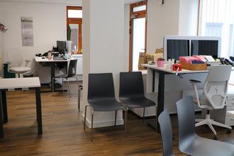 Wer einen neuen Ausweis braucht oder demnächst heiraten will, der ist hier genau richtig. Große Fenster lassen den Raum dahinter, mit seinen modernen Tischen und Stühlen, erstrahlen. Hier ist nun das Einwohnermeldeamt zu Hause. Einen Raum weiter hat das Standesamt seinen neuen Sitz.
