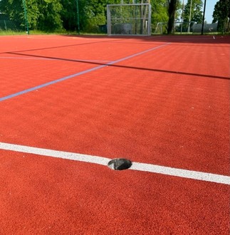 Durch die entwendete Abdeckung der Bodenhülsen besteht Unfallgefahr und der Bolzplatz wird mit sofortiger Wirkung geschlossen bis die Mängel behoben sind.