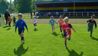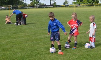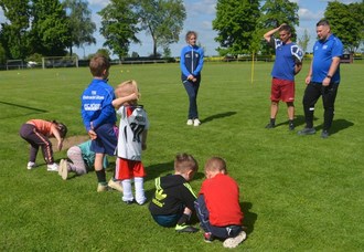 Bei sonnigem Wetter folgten 6 interessierte Kinder der im Vorfeld bekanntgegeben Einladung. Nach einer kurzen Begrüßung durch Abteilungsleiter Karsten Ehret übernahm G-Jugend-Trainer Uwe Gentsch unterstützt von Anna Lemmnitz die Zügel und lies die Kinder zur Erwärmung eine Runde einlaufen.