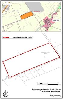 Der Bebauungsplan „Solarpark Nellschütz" der Stadt Lützen wird mit der Begründung und der zusammenfassenden Erklärung vom Tag der Veröffentlichung dieser Bekanntmachung im Bauamt derStadt Lützen, Markt 1, 06686 Lützen während der Öffnungszeiten zu jedermanns Einsicht bereitgehalten.