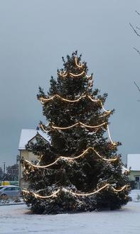 Der Baum erstrahlte in der Advents- und Weihnachtszeit in seiner ganzen Schönheit mit wetterfester, moderner und stromsparender LED-Beleuchtung zur Freude der Einwohner und Besucher Neukieritzschs.