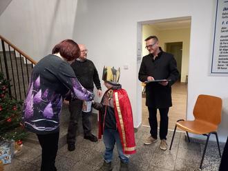Segen sprechen, Spenden sammeln; rechts: Andreas Schulz (Sternsinger-Verantwortlicher der katholischen Gemeinde St. Joseph Borna)