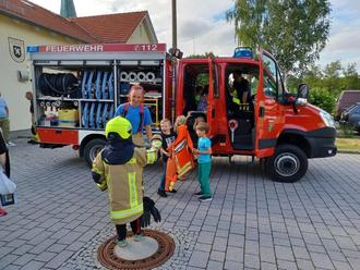 Am 05.07.2024 waren wir als kleine „Attraktion“ in den Kindergarten nach Großzössen eingeladen. Bei unserer Ankunft schauten viele kleine Kinderaugen völlig überrascht und waren sichtlich begeistert von der Feuerwehr. Nach einer halben Stunde Sachen anprobieren, Fahrzeug begutachten, Funken und vieler Fragen hieß es dann „zurück in den Kindergarten“. Zur Überraschung der Schulanfänger haben wir diese von der Feuerwehr Großzössen bis in den Kindergarten mit dem Feuerwehrauto gefahren. Im Kindergarten wartete dann der Zuckertütenbaum. Es war eine gelungene Überraschung für die kleinen ABC – Schützen und eine sehr schöne Zeit für uns. Danke an die Organisatoren.