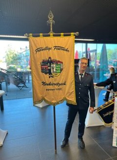 Diese würdevolle Aufgabe übernahm unser Kamerad Jonas Irmscher. Mit Stolz präsentierte er unsere Fahne und trug sie ehrenvoll zum vorgesehenen Platz. Herzlichen Dank!