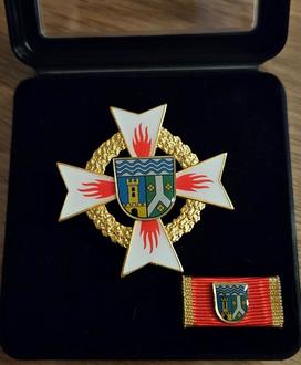 Dieses Ehrenkreuz ist die Höchste Auszeichnung im Kreisfeuerwehrverband Landkreis Leipzig. Ebenfalls erhielt er einen vollgepackten Präsentkorb.