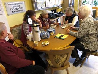 Gespräche: Wie war das damals? Detlev (l.) und Hella Bergholtz (2.v.l.) erinnern sich gut an ihre Zeit als Lehrer in Neukieritzsch und engagieren sich als Mitglieder in der Geschichtswerkstatt.