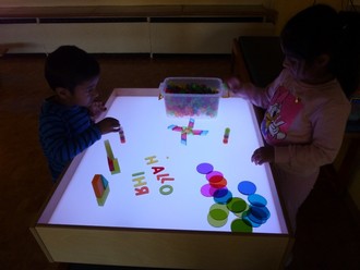 Die leuchtenden Materialien ermöglichen ein multisensorisches Erleben und regen zum Forschen an: