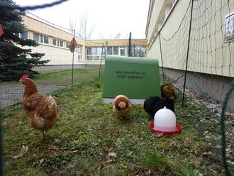 Täglich wurden die Hühner von den Kindern beobachtet und die Kinder lernten, dass Hühner auch auf einem Bein stehen können, es auch Streit unter den Hühnern gibt, dass einige Hühner Regen mögen und ganz anders aussehen, wenn die Federn nass sind.
