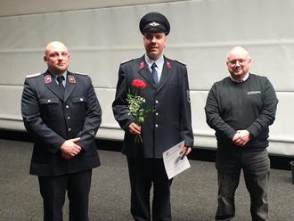 An dem Abend wurden weitere Auszeichnungen und Beförderungen von Kameradinnen und Kameraden vorgenommen. So konnte auch der neu gewählte Gemeindewehrleiter aufgrund seiner Dienstzeit und der erfolgreich absolvierten Lehrgänge an der Landesfeuerwehr- und Katastrophenschutzschule Sachsen zum Brandmeister befördert werden.