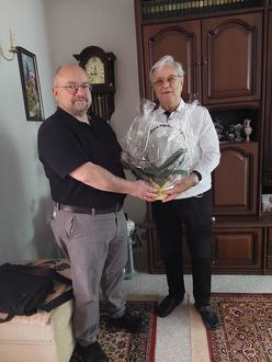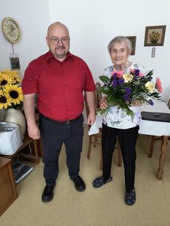 Zum 92. Geburtstag überbrachte Herr Meckel Blumen und Glückwünsche an Frau Ruth Tschöpe.