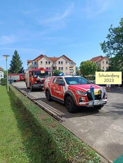 Das Schuljahr 2023/24 begann mit viel Sonne für unsere 40 Schulanfänger und einem tollen Schulanfangsprogramm unserer nun 4. Klasse. Zur schönen Tradition ist es geworden, dass die freiwillige Feuerwehr die Zuckertüten aus der Schule „rettet“ und sie den Kindern überreicht.