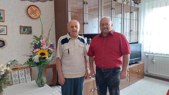 Herr Manfred Fichna aus Neukieritzsch emfing zu seinem 97. Geburtstag den Bürgermeister Thomas Meckel, der dem Senior alles Gute bei bester Gesundheit wünschte.