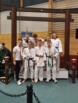 Als nächstes war es an Nick sein können zu zeigen. Er verlor zwar seine beiden Kämpfe, aber seine Formkurve zeigt stark nach oben und macht die Vorfreude auf das kommende Wettkampfjahr sehr groß. Nun stand Dominik auf der Matte. Er wurde im ersten Kampf überrascht und verlor sehr schnell. Im 2. Kampf machte er es schon besser, hielt gut dagegen und zeigte, dass mit ihm zu rechnen ist. Auch wenn er beide Kämpfe verlor, zeigte er Kampfeswillen und Engagement. Julius war froh als er endlich dran war. Hochmotiviert startete er in seine Kämpfe. Bei 3 seiner 4 Kämpfe ging er als Sieger von der Matte und wurde starker 3. Er war selbst etwas unzufrieden, weil ihm einiges noch nicht so gelang wie gewünscht. Vincent war als letzter an der Reihe. Er gewann 3 seiner 5 Kämpfe. Die beiden Niederlagen erfolgten gegen denselben Gegner. Vincent setzte seine Flexibilität ein und zeigte starkes Judo. Zum Schluss belohnte er sich mit dem 3. Platz.
