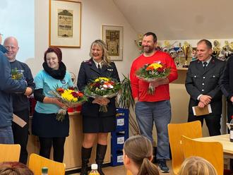 Zum Abschluss des Tages gab es eine besondere Überraschung für die ausscheidenden Jugendwarte. Sechs ehemalige Jugendfeuerwehrkinder, die heute in der aktiven Wehr mitwirken, überreichten mit emotionalen Worten Blumen, eine Flasche Sekt und einen Restaurantgutschein. Es war ein wunderschöner Abschluss einer ereignisreichen Zeit.