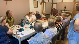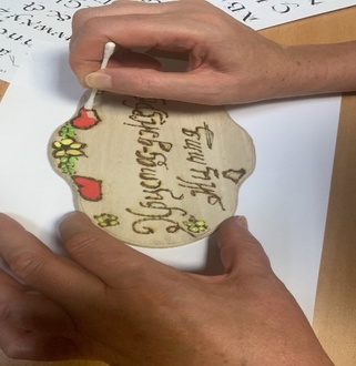 An einem Tisch wurde erst einmal alles vorgezeichnet, bevor es dann später ans Brennen der Bilder ging. Dabei zeigte sich doch das eine oder andere Talent. Und bei Kaffee, Wasser sowie einem freundlichen Plausch in sorbischer, deutscher und ukrainischer Sprache hatten alle viel Spaß und Freude.
